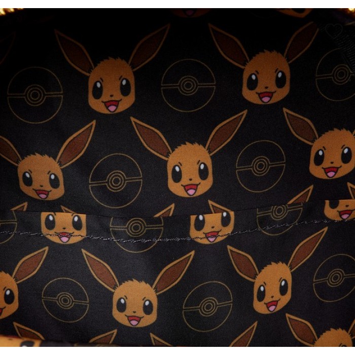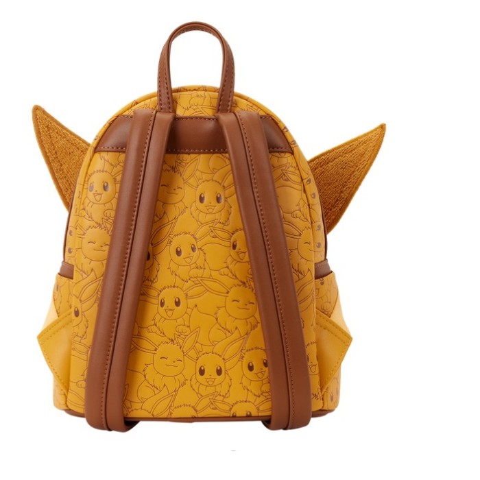 Dimension: 27 cm x 23 cm x 11,5 cm. Made of 100% Polyurethane Faux Leather, suede, fabric interior. A compartment on the front. Adjustable handle and straps. Pokemon Official License.