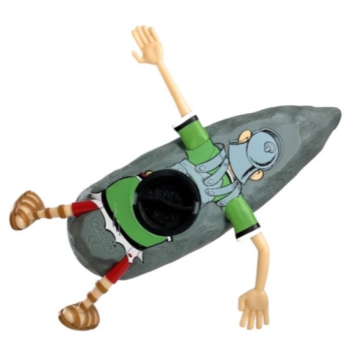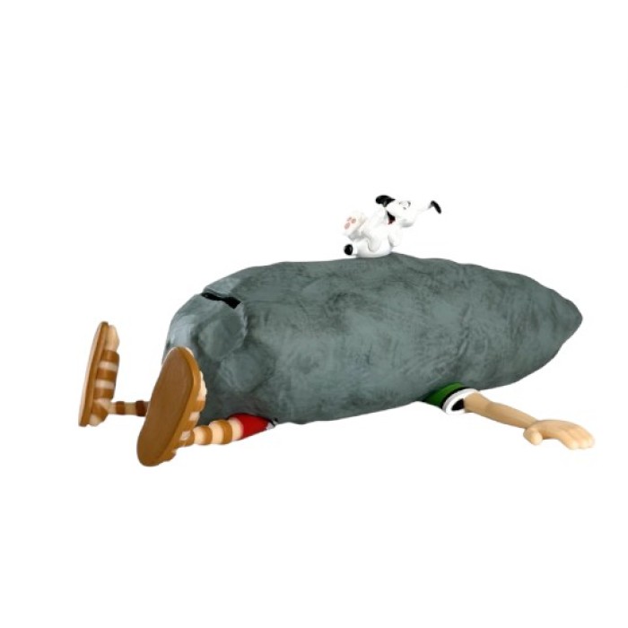 Roman piggy bank crushed by a menhir. Officially licensed Plastoy product. Height: 8 cm.