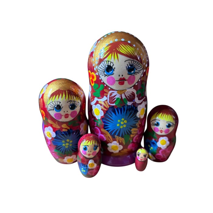 Matriochka - Poupées Russes. 5 poupées.  Hauteur 11 cm. Peinte à la main en Russie. Fabriquée en bois.