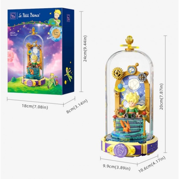 Décoration du Petit Prince dans un ensemble de 196 briques à construire. Dimensions une fois la construction terminée: 20 x 10.6 x 9.9 cm. Fabriqué par Pantasy en plastique ABS. Copyright Antoine de St-Exupéry.