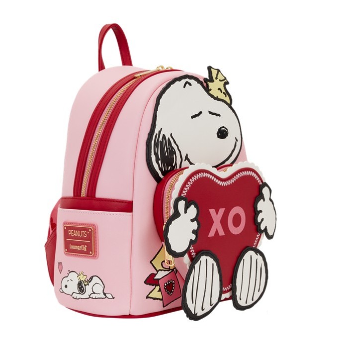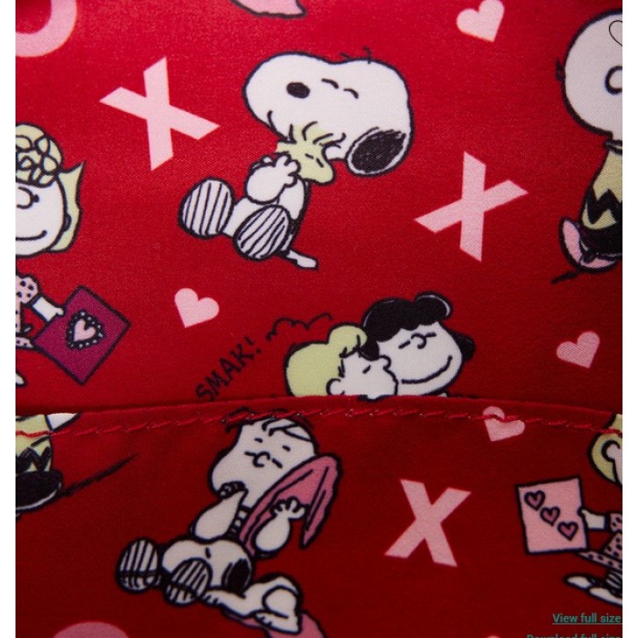 Dimension: 27 cm x 23 cm x 11.5 cm. Fabriqué de 100 % Polyuréthane Faux Cuir, intérieur en tissu. Un compartiment sur le devant. Poignée et courroies ajustables. Licence Officielle Peanuts.