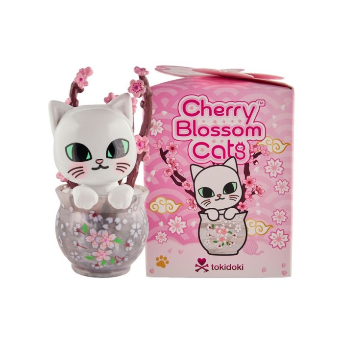 Chaque figurine Cherry Blossom Cats de Tokidoki est livrée dans une boîte surprise. Il y a neuf modèles différents: Sakura Paws, Kitty Petals, Kitten Cuddles, Sakura Kitty, Sakura Party, Pawplay Kitty, Playtime Kitty (Rare), Purrty Kitty, Cherry Blossom Kitty. Collectionnez-les toutes !