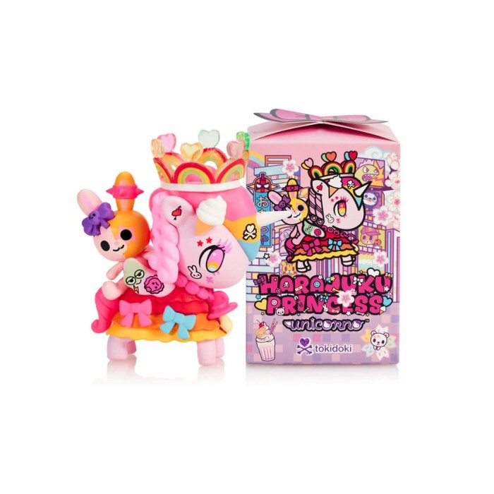 Chaque licorne de la série Harajuku Princess Unicorno de Tokidoki est livrée dans une boîte surprise. Il y a neuf modèles différents: Himawari, Akemi, Sprinklez, Harafuru, Lollipop, Gurokawa, Cuddlez (rare), Fuwa et Teddy Queen. Collectionnez-les toutes! Les figurines fabriquées en vinyle mesurent approximativement 7 cm.